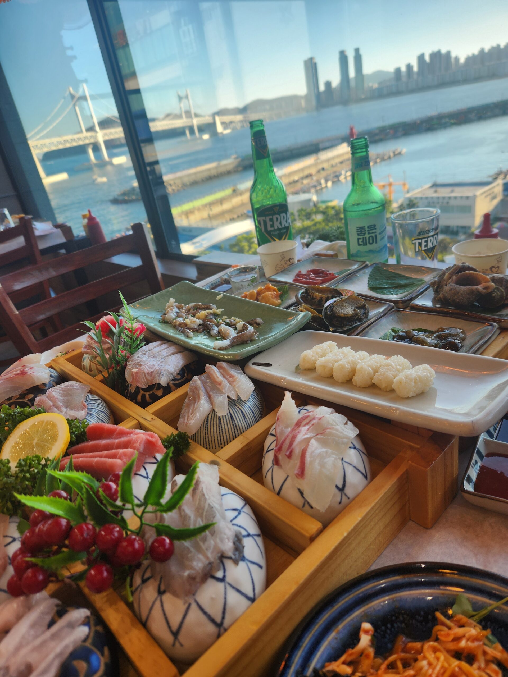 광안대교 뷰 집중도: 다른 오션뷰 식당들도 훌륭하지만, 산해횟집은 특히 광안대교 뷰를 극대화할 수 있는 좌석 배치와 통유리창을 갖추고 있어 뷰에 대한 만족도가 높습니다.